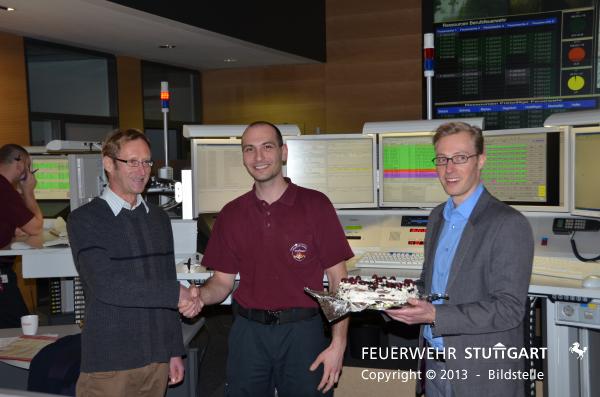 Eine schöne Geste durften die Disponenten in der Integrierten Leitstelle Stuttgart am Valentinstag erleben. Anfang Dezember erlitt ein 60 Jahre alter Mann im Stuttgarter Stadtteil Botnang einen schweren Herzinfarkt. Angehörige alarmierten umgehend über den europaweiten Notruf 112 die Integrierte Leitstelle der Feuerwehr und des Rettungsdienstes in Stuttgart. Umgehend wurde vom Disponenten der nächstgelegene Rettungswagen und ein Notarzt alarmiert. Der Patient war zu diesem Zeitpunkt nicht mehr ansprechbar und hatte keine Herz-Kreislauftätigkeit mehr. Der sich am Notruf befindliche Disponent hat vorbildlich, solange die Rettungskräfte auf der Anfahrt waren, den Sohn des Patienten am Telefon mit Erste-Hilfemaßnahmen angeleitet. Die Rettungskräfte konnten die Maßnahmen erfolgreich fortsetzen und die Kreislauftätigkeit des Patienten stabilisieren.