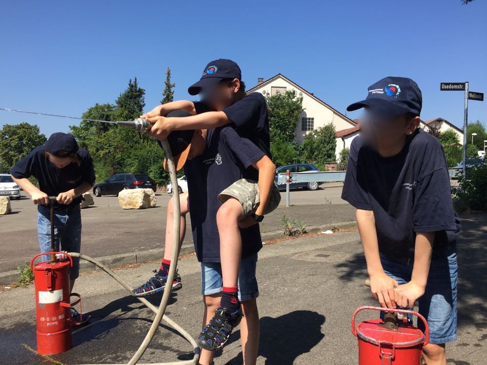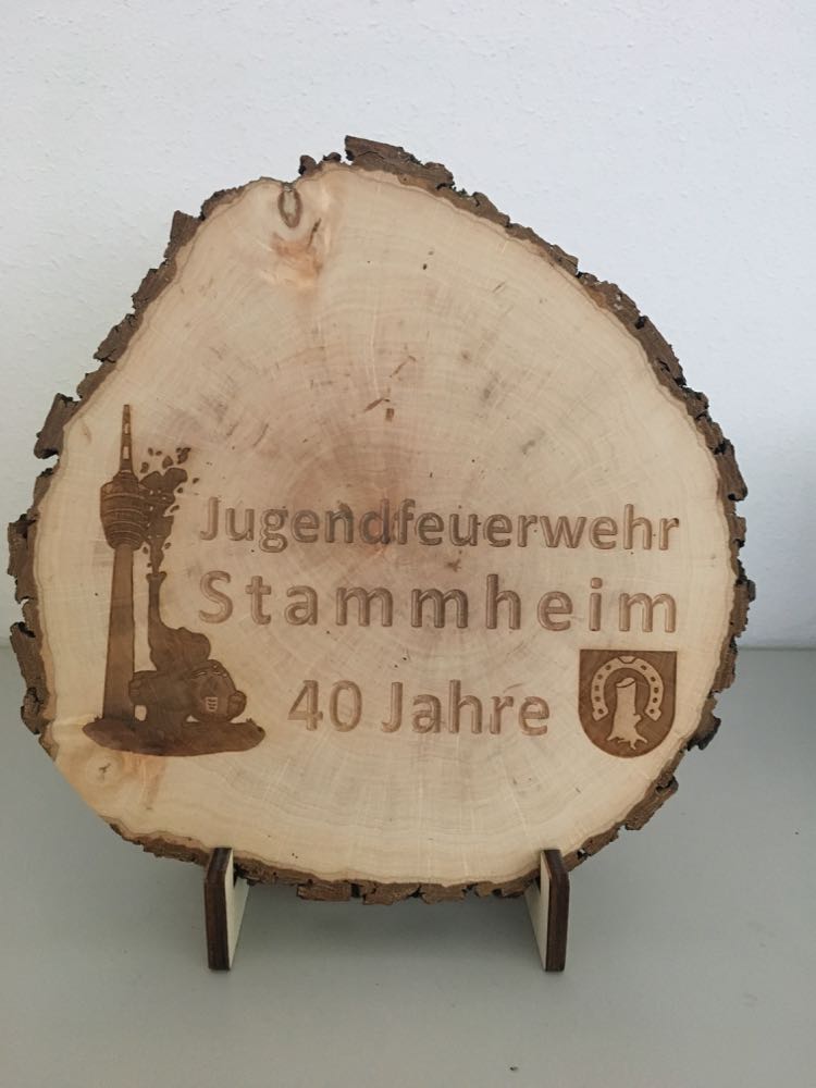 Als Highlight nach einer schweißtreibenden Rallye konnten sich alle Kinder im Freibad an der Schlotwiese austoben und mit einer Grillwurst stärken. Als Erinnerung bekamen die teilnehmenden Abteilungen eine Stammscheibe mit der Lasergravur „Jugendfeuerwehr Stammheim 40 Jahre“.