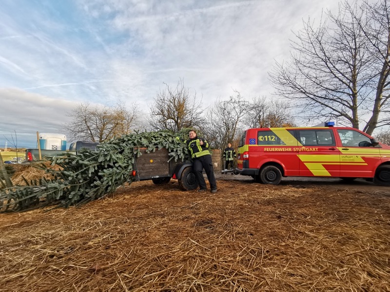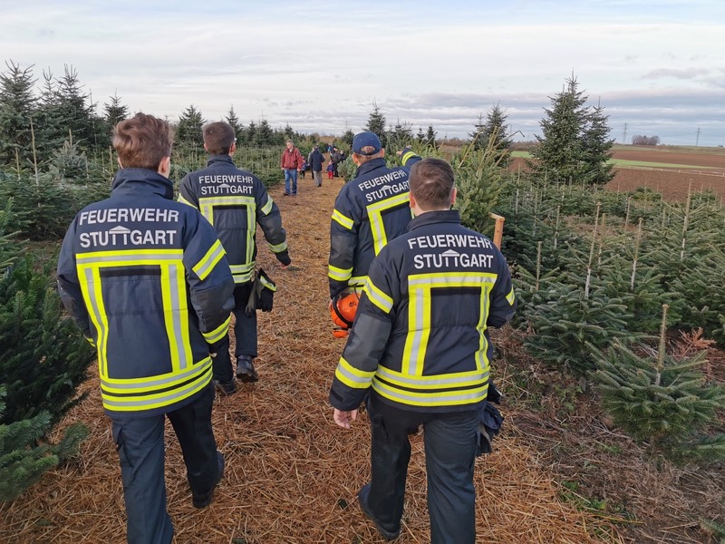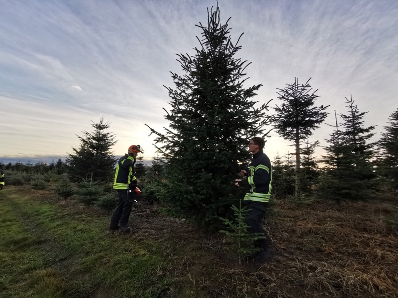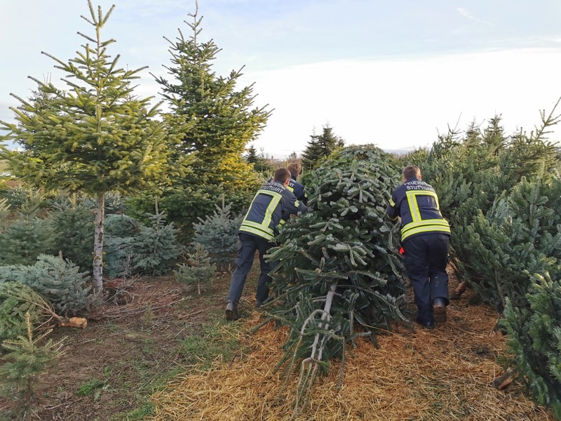 Am Sonntagmorgen, den 2. Advent, machten sich 5 Mitglieder der Freiwilligen Feuerwehr Stammheim auf den Weg Richtung Möglingen. Hier wurde am Wasserturm auf einer Weihnachtsbaumplantage ein Baum für das Dach des Feuerwehrhauses geschlagen.