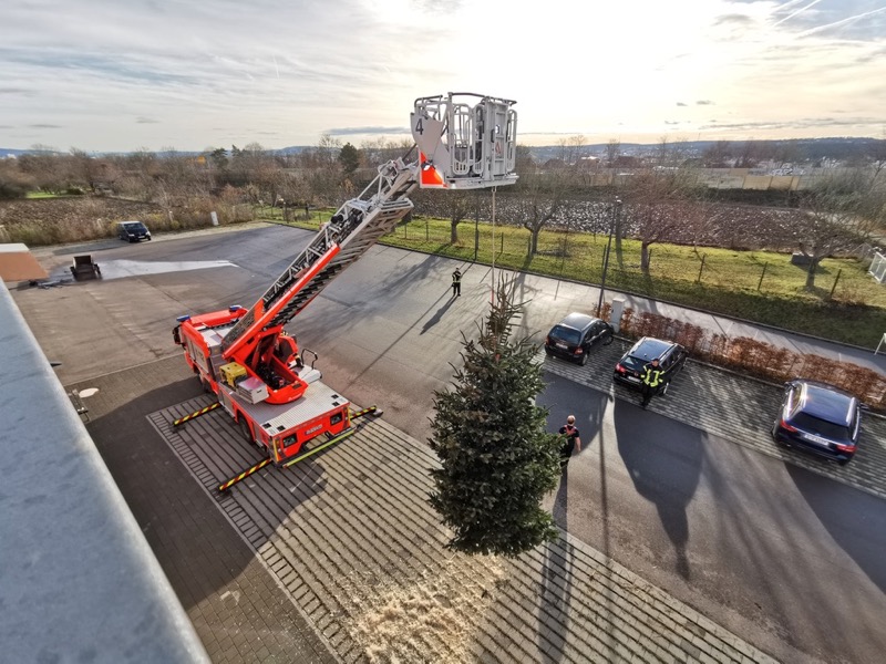 Weihnachtsbaum auf dem Feuerwehrhaus Stammheim