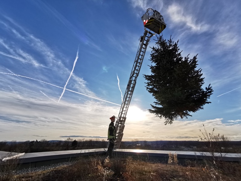 Weihnachtsbaum auf dem Feuerwehrhaus Stammheim: