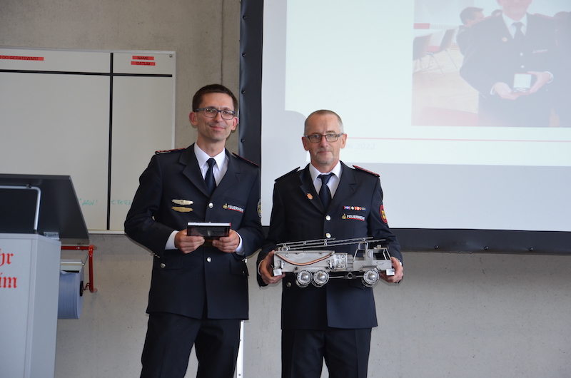 Zudem berichtete die Abteilungsführung, dass in einem festlichen Rahmen am 11.10.2021 im Kursaal Bad-Cannstatt das Feuerwehr Ehrenabzeichen in Bronze Andreas Frick und das Ehrenabzeichen in Gold Uwe Krebs verliehen wurden.