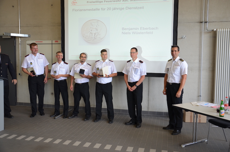 Im Anschluss an die Beförderungen wurden durch den stellv. Amtsleiter Herr Heber und Stammheimer Abteilungskommandanten Thomas Eppinger die Kameraden Christof Deigendesch, Daniel Seyfang, Florian Stortz und Stephan Vogt für Ihre 10 jährige Dienstzeit bei der Feuerwehr Stuttgart geehrt und die Florianmedaille für 10 Jahre überreicht.
