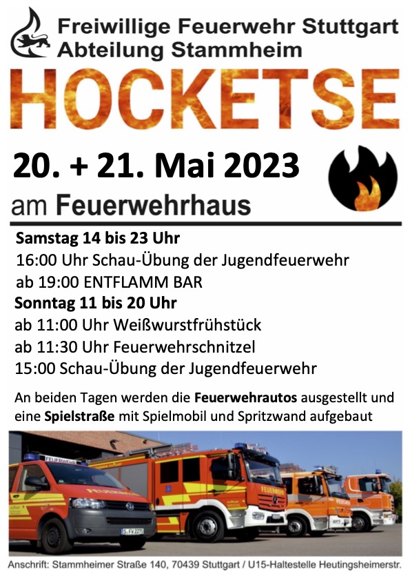 Die Feuerwehr Stammheim lädt zur Feuerwehr-Hocketse am Feuerwehrhaus ein!