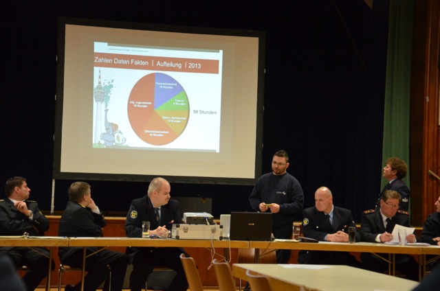 Nach einer kurzen Begrüßung folgte der Bericht des Stammheimer Abteilungskommandanten Werner Gühring über das vergangene Jahr. Im vergangenen Jahr 2013 wurde die Feuerwehr Stammheim zu insgesamt 59 Einsätzen in Stammheim, Zuffenhausen, Feuerbach und weiteren Stuttgarter Stadtteilen alarmiert. Insgesamt leisteten die Stammheimer Feuerwehrmänner im Jahr 2013 mehr als ca. 80 Einsatzstunden pro Einsatzkraft. Neben 4 Wachbesetzungen, mehreren - teils schweren - Verkehrsunfällen und Bränden, waren die Einsatzkräfte - nach einem starken Unwetter am 29. Juli 2013 - mehr als 10 Stunden am Stück im Einsatz, um im Stuttgarter Stadtgebiet Keller auszupumpen und Straßen von Schlamm zu befreien.