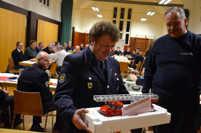 Der bisherige Abteilungskommandant Werner Gühring, welcher seit mehr als 10 Jahren die Feuerwehr Stammheim leitet, kandidierte aus beruflichen Gründen nicht mehr für das Amt des Abteilungskommandaten. In den vergangenen Jahren hatte Werner Gühring mit viel Engagement die Abteilung Stammheim geführt und den Neubau des Feuerwehrhauses Stammheim maßgeblich in die Wege geleitet. Als Dankeschön für seine Verdienste und Anerkennung, hatte sich die Mannschaft ein besonderes Geschenk ausgedacht. Neben einem detailgetreuen Modell einer Drehleiter, erhielt Werner Gühring einen Reisegutschein.