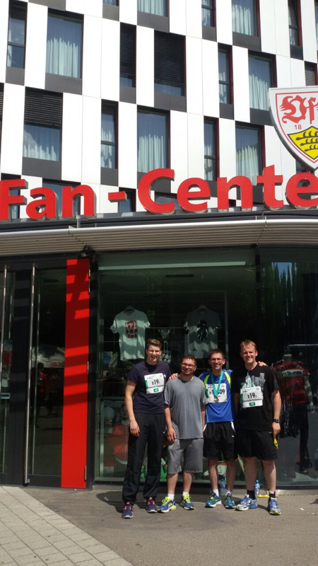 Für den ersten Läufer des Halbmarathon-Staffellaufs ging es auf der Benzstraße in Richtung Untertürkheim los. Nach einer Laufstrecke von 6,6 km übergab dieser Läufer an der Gnesenerstr. das Staffelholz in Form eines Zeitchips an den zweiten Läufer der Staffel. Dieser lief bei strahlendem Sonnenschein über Münster, Hofen, Mühlhausen und das Keefertal wieder zurück nach Münster und übergab nach absolvierten 8,1 km den Zeitchip auf der Reinhold-Maier-Brücke an den dritten Läufer. Der letzte Streckenabschnitt ging über 6,4 km von Münster nach Bad-Cannstatt mit dem Zieleinlauf in die MercedesBenz-Arena. Dort wurden die Läufer von ihren Fans auf der Haupttribüne empfangen.