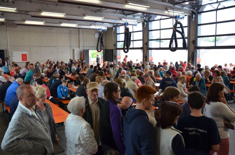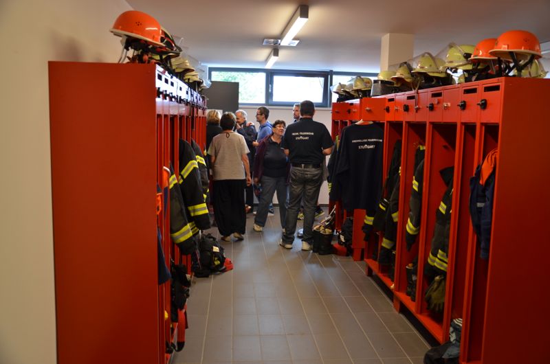 Schon bald zeigte sich, dass die Führung durch das neue Feuerwehrhaus ein Highlight des Wochenendes werden sollte. Alle 30 Minuten wurden jeweils zwei Gruppen mit jeweils ca. 30 bis 40 Personen durch das Gebäude geführt und der Aufbau des Gebäudes sowie die Abläufe bei der Freiwilligen Feuerwehr Stammheim erklärt. So wurden an beiden Tagen insgesamt über 1000 Besucher durch das Gebäude geführt.