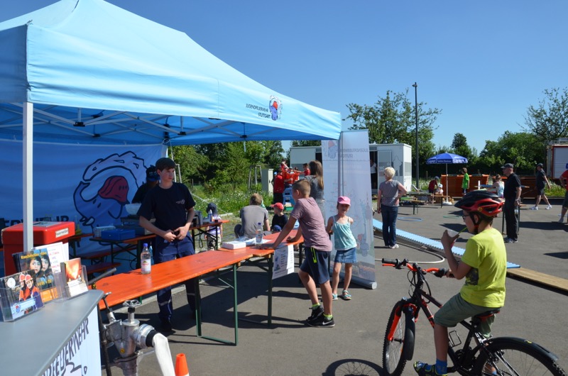 Als es dann 15:00 Uhr war, zeigte die Jugendfeuerwehr mit einer Schauübung, dass sich die Feuerwehr Stammheim um seinen Nachwuchs keine Sorgen machen muss! Ein Löschangriff mit drei Rohren wurde erfolgreich vorgeführt und im Anschluss standen die Jugendlichen einem Reporter der Stuttgarter-Nachrichten Rede und Antwort. Fast wie bei einem echten Einsatz.