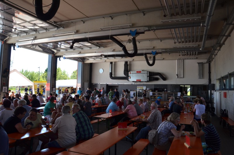 Am Sonntagmorgen startete dann die Hocketse bei strahlendem Sonnenschein mit dem traditionellen Weißwurstfrühstück und zur Mittagszeit wurde das legendäre Feuerwehr-Schnitzel serviert.