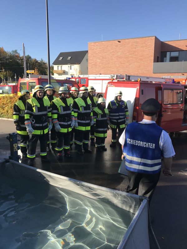 Es traten 10 Gruppen beim Abzeichen in Bronze, 4 Gruppen beim Abzeichen in Silber und 8 Gruppen beim Abzeichen in Gold an. Die Teilnehmer kamen allerdings nicht nur aus dem Stadtkreis Stuttgart, sondern aus ganz Baden-Württemberg. Es waren Gruppen aus Münsingen, Waldenbuch, Schönaich, Dettingen, Besigheim, Korntal-Münchingen oder Schwieberdingen am Start. Beim Abzeichen in Bronze musste ein Löschangriff mit Menschenrettung über Steckleiter aus dem ersten Obergeschoss durchgeführt werden. Das Abzeichen in Silber beinhaltet sowohl einen Löschangriff als auch die Abarbeitung eines Verkehrsunfalls mit eingeklemmter Person. Beim Löschangriff erfolgt die Wasserentnahme aus einem offenen Gewässer durch Saugschläuche. Die Stufe Gold startet mit einem schriftlichen Test, der das theoretische Wissen der Mannschaft prüft. Dann folgt ein Löschangriff unter Atemschutz und Vornahme eines Schaumrohres und Menschenrettung über eine Steckleiter. Zum Abschluss des Abzeichens Gold musste wieder eine Verkehrsunfall mit eingeklemmter Person abgearbeitet werden. Alle Übungsteile wurden von den strengen Augen der Schiedsrichter nach einem vorgegebenen Fehlerkatalog bewertet und die Zeiten für die Durchführung wurden gestoppt.
