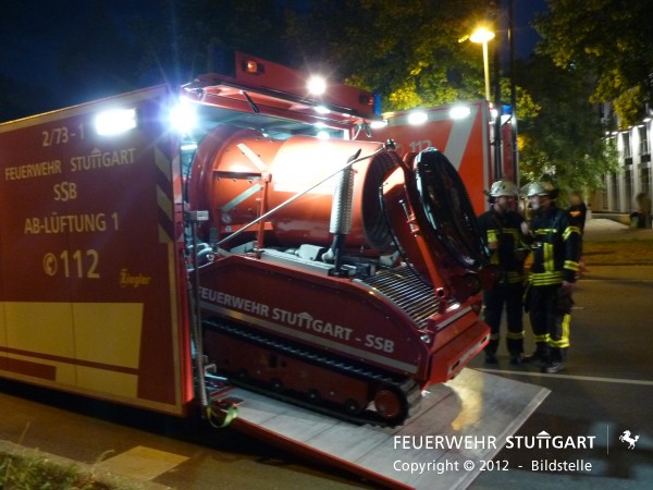 Mit einem Löschunterstützungsfahrzeug (LUF) und weiterem Belüftungsgeräten wurde im Anschluss der verrauchte Bereich belüftet und den Mitarbeitern der SSB und der Polizei der Zugang ermöglicht.