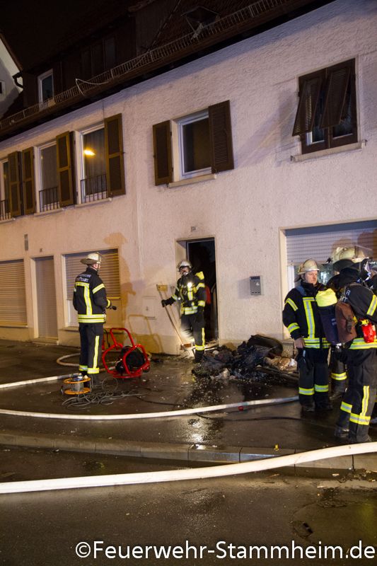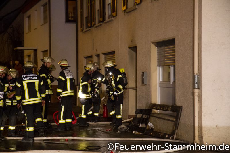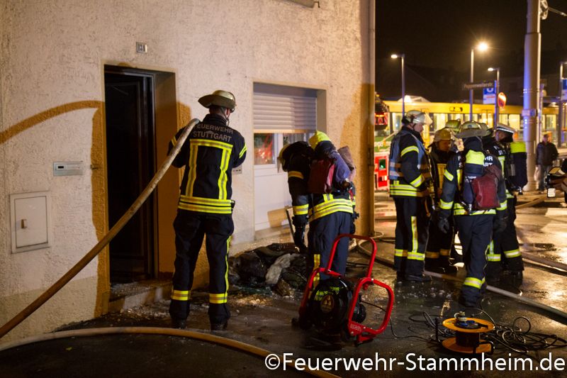 In der Integrierten Leitstelle der Feuerwehr und des Rettungsdienstes in Stuttgart (ILS) haben mehrere Anrufer einen Brand im Eingangsbereich eines Wohnhauses, über den europaweiten Notruf 112, gemeldet. Daraufhin wurden von der Leitstelle ein Löschzug der Berufsfeuerwehr, die Freiwillige Feuerwehrabteilung Stammheim und der Rettungsdienst alarmiert.