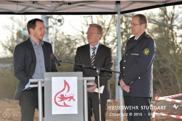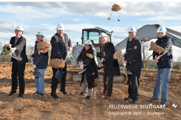 Die Freiwillige Feuerwehr Stuttgart, Abteilung Stammheim, darf sich auf ein neues Feuerwehrhaus freuen. Dr. Martin Schairer, Bürgermeister für Recht, Sicherheit und Ordnung, Stefan Eppinger, Stellvertretender Leiter der Branddirektion, und Susanne Korge, Bezirksvorsteherin von Stammheim, setzten am Dienstag, den 03. März, gemeinsam mit Christian Frey, Kommandant der Stammheimer Feuerwehr und Architekt Martin Wypior den ersten Spatenstich auf dem Baugrundstück Stammheimer Straße/In den Hochwiesen.